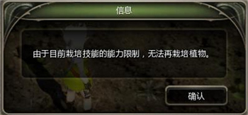 | 当玩家种植数超过一定量后将不能种植更多的作物 |